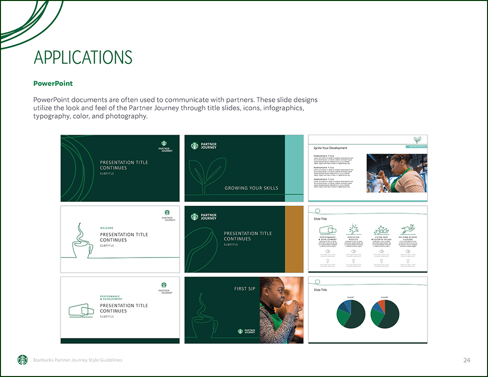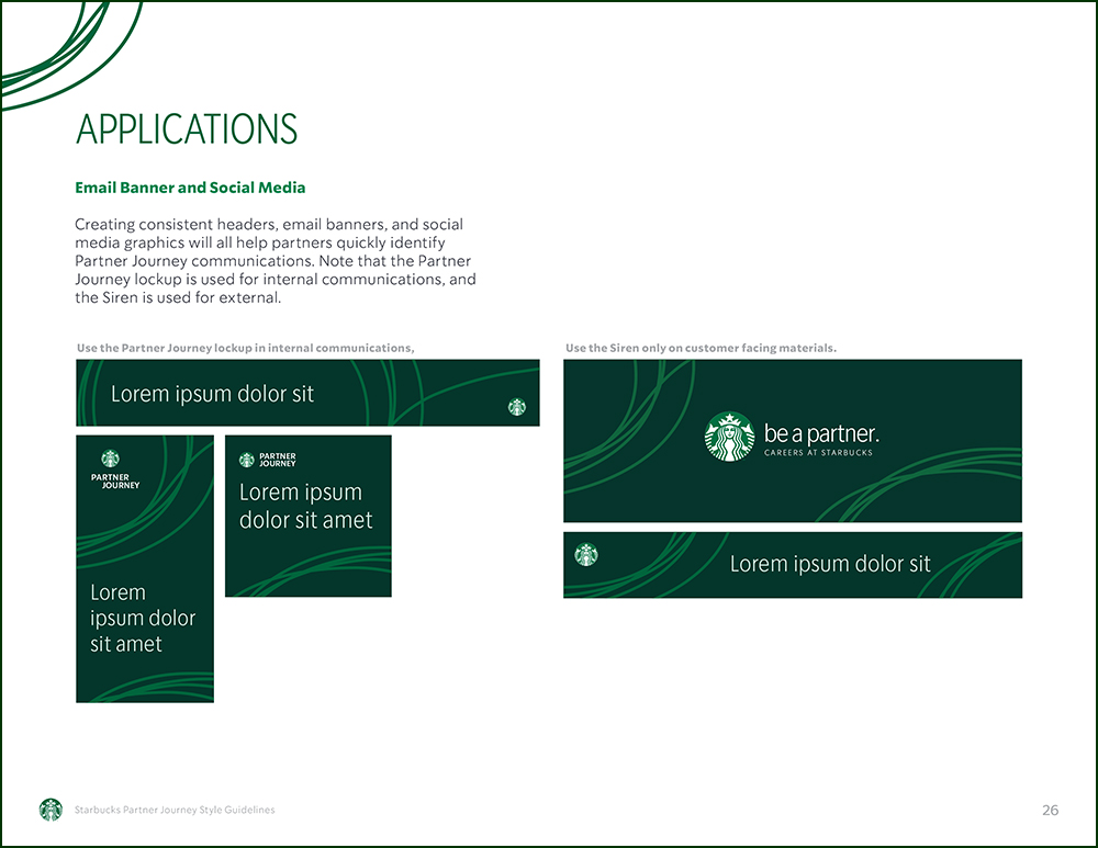The Work // Our cross-functional team closely collaborated with the client to develop their visual and communication strategy. At the end, we delivered a complex set of tools that described what it means to be a partner and how to use the ‘Green Thread’ as a consistent visual representation of the Starbucks Partner Journey. This was one of my all-time favorite projects I had the opportunity to work on: highly engaged clients, lots of deep thinking, a complex system, and smart design solutions.