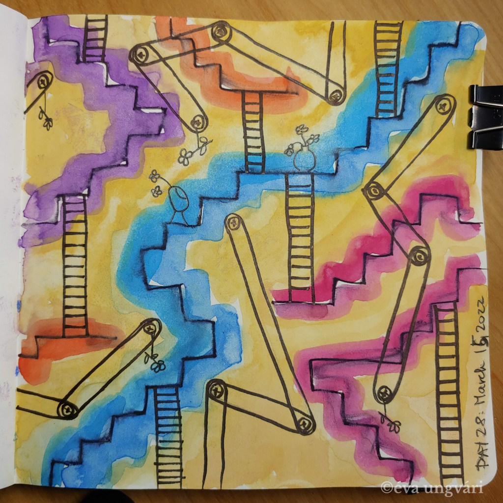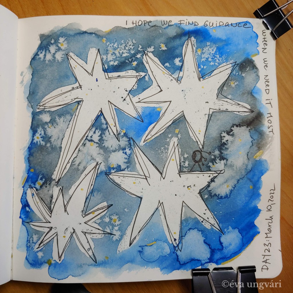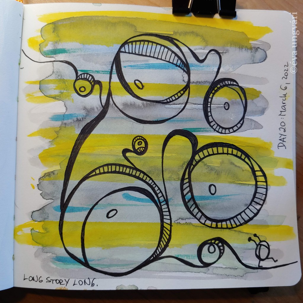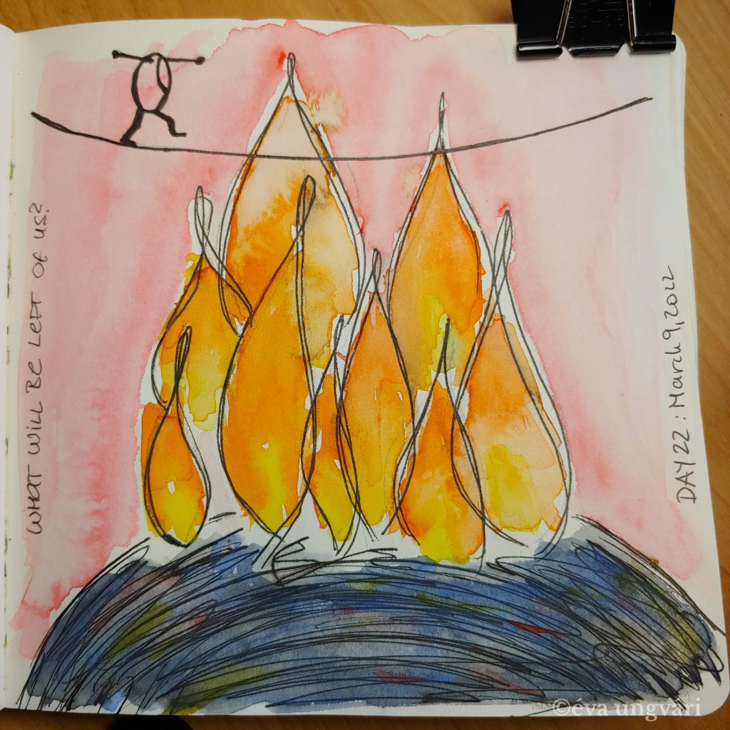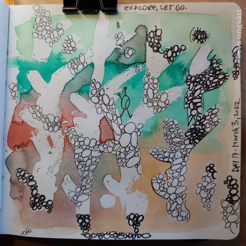 Is it the same being in all pieces or are there many of them? I’ll let you decide. They just started showing up in my work as observers, bringing each piece alive. When I find their place in the environment I feel a completion, a deeper connection to what showed up on the paper. I can let go and move on. They’ll stay there to witness what’s unfolding in my life or in our world.